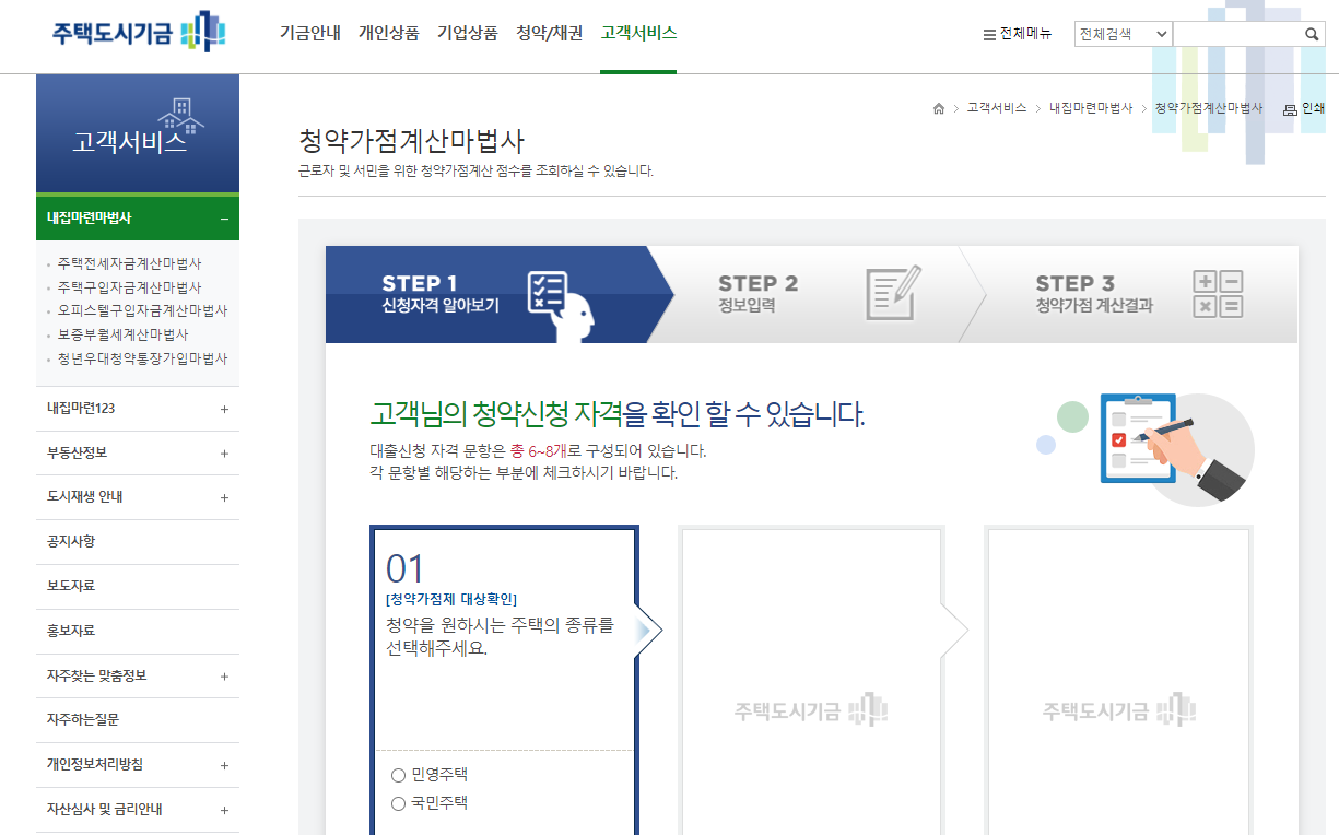 청약가점계산마법사 < 내집마련마법사 < 고객서비스 | 주택도시기금 (molit.go.kr)