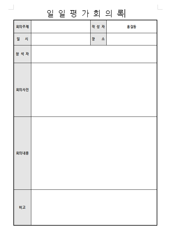 안녕하세요 오늘은 회의록 양식을 무료 다운로드 하실 수 있도록 공유해 드리려고 합니다. 회의록이란 무엇일까요? 영어로는 Meeting Minutes라고 하며, 회의가 이루어지는 장소에서 이루어지는 모든 내용을 작성하여 보관하는 문서입니다. 회의마다 회의록은 반드시 작성해야 하며, 회의에서 결정된 사항을 증명할 수 있는 증빙과도 같은 문서라고 보면 되겠습니다.