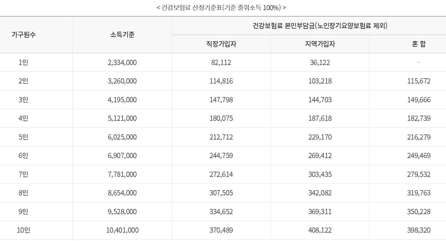 건강보험료는 전체 가구원 중 '보험가입자'의 본인 부담금을 합산