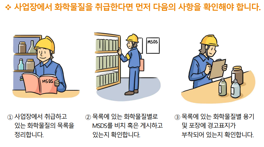 우리 주변엔 수많은 화학물질들이 존재합니다. 하지만 이러한 화학물질로부터 자신을 보호하기 위해서는 반드시 지켜야 하는 최소한의 약속이 있으니 그것이 바로 물질안전보건자료제도입니다.