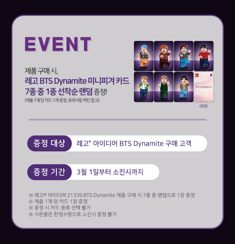 이 기간동안 레고 BTS Dynamite를 구매시