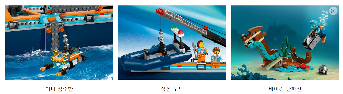 프리미엄급 플레이 세트답게 정교하고 사실적인 헬리콥터, 딩기 보트, 수중 ROV 잠수정,