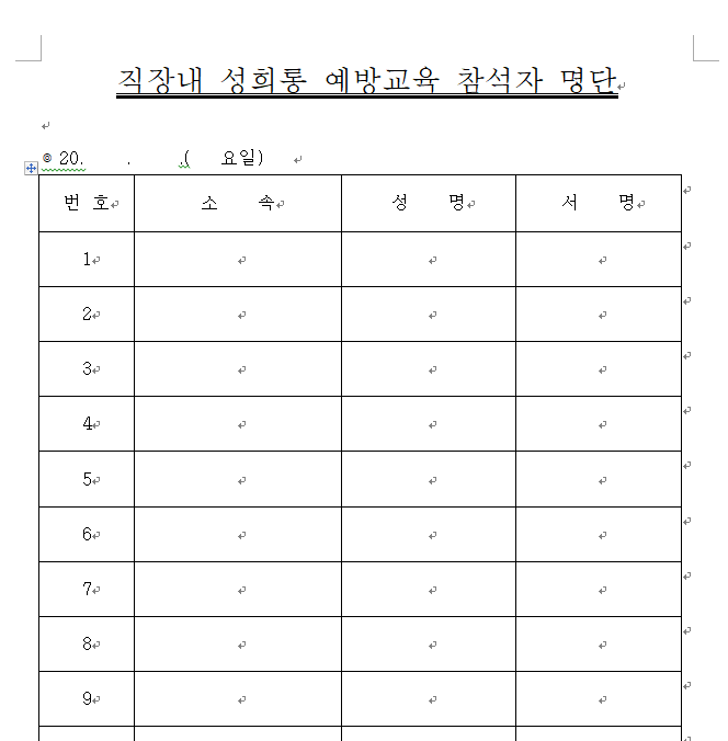 안녕하세요 오늘은 성희롱 예방교육 자료 매뉴얼과 참석자 명단 양식을 무료로 다운로드 하실 수 있도록 공유해 드리려고 합니다. 최근 직장에서 성희롱 사건이 끊이지 않아 직장인들의 안전한 업무환경을 위해 많은 기업에서 성희롱 예방교육을 실시하고 있습니다.