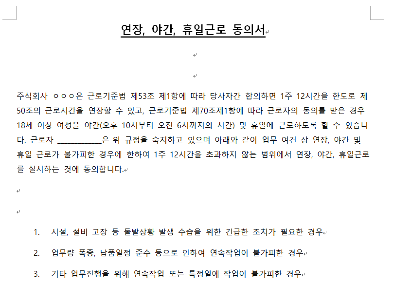 ※연장야간휴일근로 동의서 양식 무료 다운로드 방법