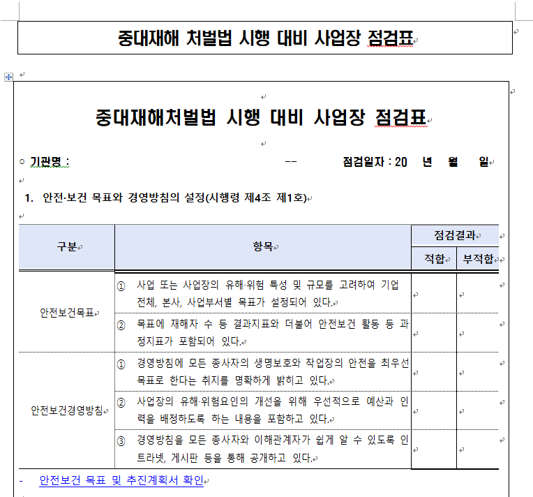 ※중대재해처벌법 사업장 점검표 양식 무료 다운로드 방법