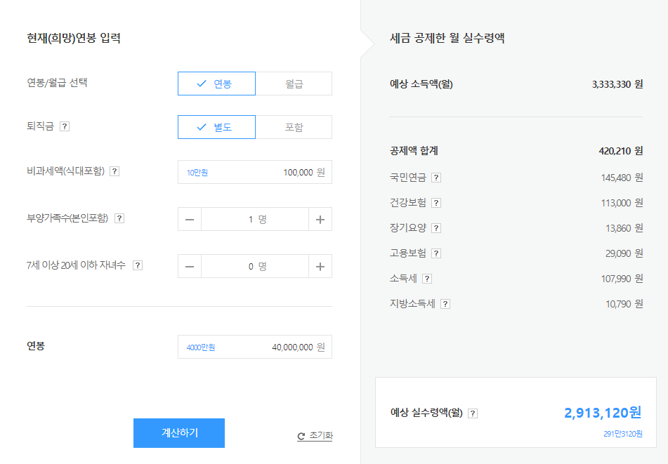연봉 4000 실수령액은 어떻게 될까?
