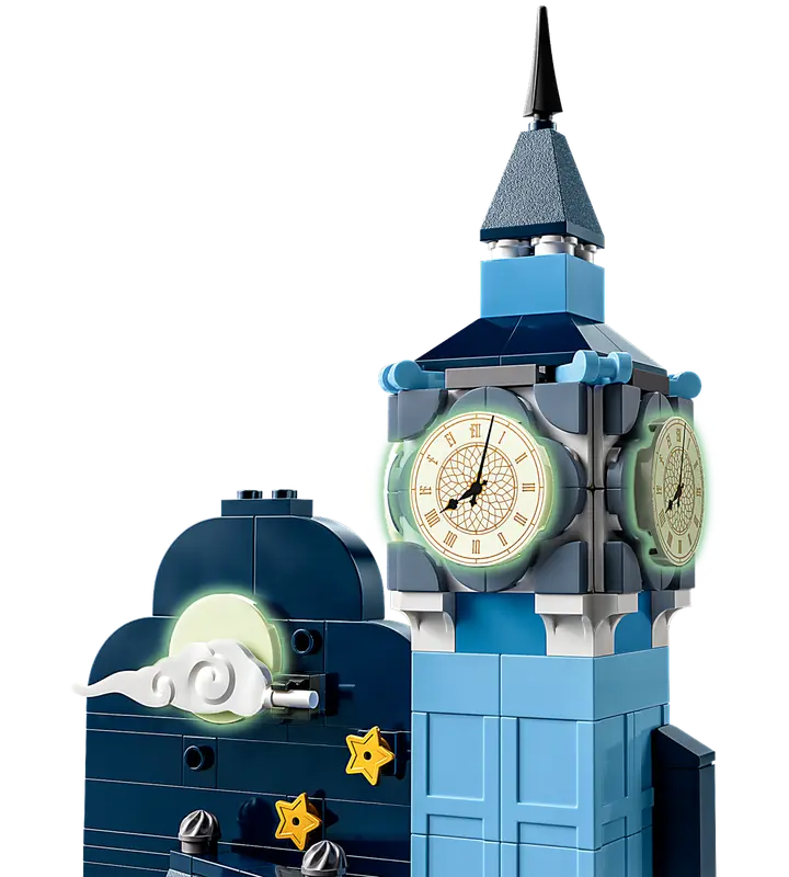 런던의 빅벤, 야광 시계판 3개, 야광 달, 강과 다리,