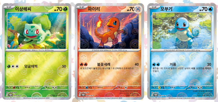 포켓몬 카드 게임 스칼렛&바이올렛의 새로운 강화 확장팩 포켓몬 카드 151이 국내에 정식 출시 될 예정입니다. 이번 포켓몬카드 151에는 포켓몬 도감의 도감번호순으로 이상해씨부터 뮤까지의 포켓몬이 수록 되어 있다는 점이 가장 큰 특징입니다.
