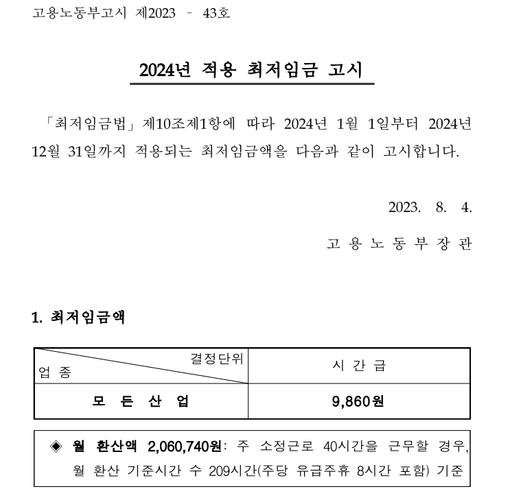 ※ 2024년 최저임금 고시문 양식 무료 다운로드 방법