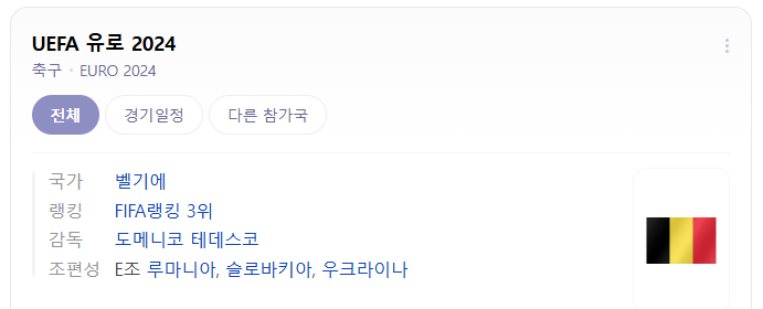 벨기에는 24년 06월 18일 한국시각 새벽 1시 슬로바키아와 유로2024 E조 예선 첫경기를 치릅니다. 피파랭킹 3위인 벨기에는 전력상 한 수 아래로 평가받고 있는 슬로바키아, 루마니아, 우크라이나와 함께 E조에 속하며 무난하게 16강 진출이 가능할 것으로 보입니다.
