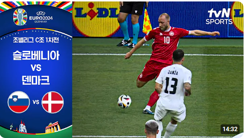덴마크는 슬로베니아와의 유로 2024 C조 1차전에서 에릭센의 선제골로 앞서 나갔지만, 후반 동점골을 내주며 일대일 무승부를 기록했습니다. 덴마크는 과거 유럽축구연맹(UEFA) 유로 2020 준결승에서 잉글랜드를 만나 연장까지 가는 접전 끝에 2대1로 패하며 결승 진출에 실패했었습니다. 오늘은 그 리벤지 매치라고 볼 수 있을 것 같네요,