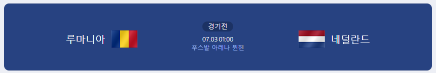 2024년 07월 03일 새벽 1시, 루마니아와 네덜란드의 유로 2024 16강전 경기가 독일 푸스발 아레나 뮌헨 경기장에서 펼쳐질 예정입니다. 네덜란드는 조별리그에서 1승 1무 1패를 기록하며, 조 3위로 16강에 진출했습니다.