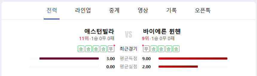 - 경기일정 : 애스턴빌라 FC VS FC 바이에른 뮌헨