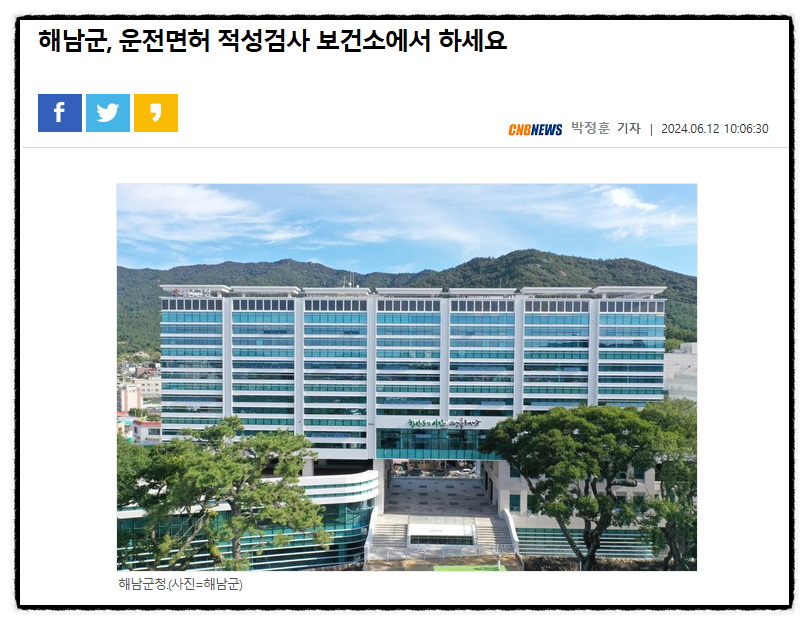 위의 뉴스기사는 실제로 운전면허 적성검사가 보건소에서 가능하다는 것을 확인할 수 있는 연관 기사입니다. 운전면허 신체검사는 운전면허를 취득할 때와 갱신 시 적성검사를 받을 때 병․의원에서 수행하는 소정 항목에 대한 검사로, 운전능력 판정의 기초자료로 활용되기 때문에 운전면허 취득을 원하는 사람은 누구나 반드시 필수로 받아야 합니다