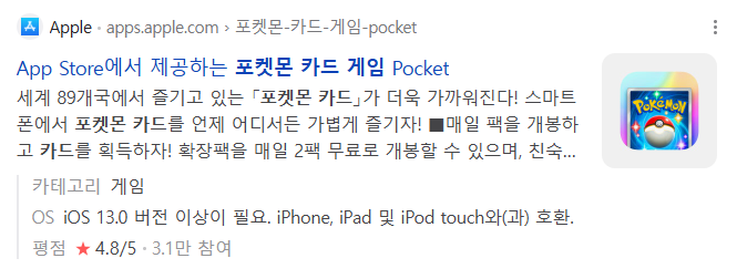 포켓몬 카드 게임 포켓 앱스토어 다운로드 바로가기 (아래 화면 클릭)