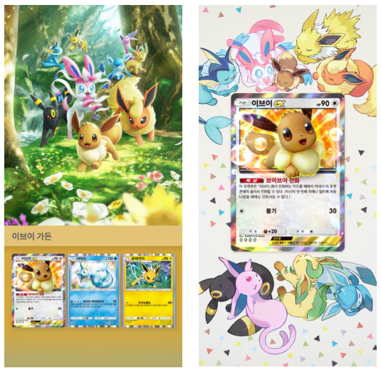 이번 확장팩은 이브이를 중심으로 한 ‘진화의 즐거움’에 초점을 맞춘 카드팩으로, 이브이와 그 진화형들이 다양한 모습으로 등장하며 유저의 시선을 사로잡고 있습니다.