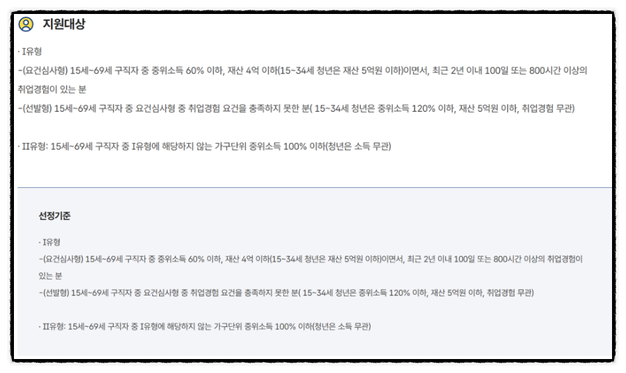 특히 청년, 중장년층, 경력단절여성, 저소득층 등 취업 취약계층에게 실질적인 도움을 제공하기 위해 두 가지 유형으로 나뉘어 운영되고 있는데요,