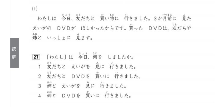 JLPT N5 예시 문제 (문장 읽고 답하기)