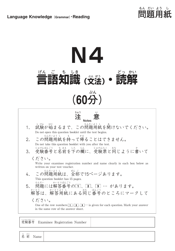 - JLPT N4 기출문제 다운로드 후 실제 문제 풀이