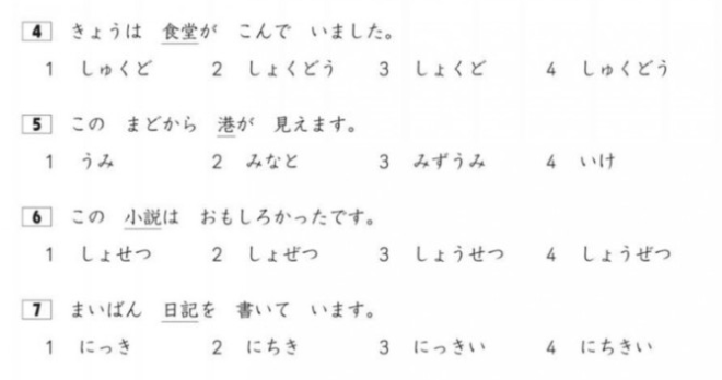 1. 문자/어휘 파트: 한자를 히라가나로 바꾸는 문제, 반대로 히라가나를 한자로 바꾸는 문제, 문맥상 알맞은 단어를 고르는 문제 등이 포함됩니다.